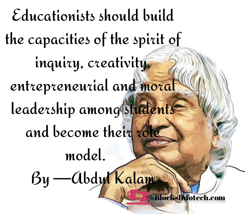"Educationists should build the capacities of the spirit of inquiry, creativity, entrepreneurial and moral leadership among students and become their role model."