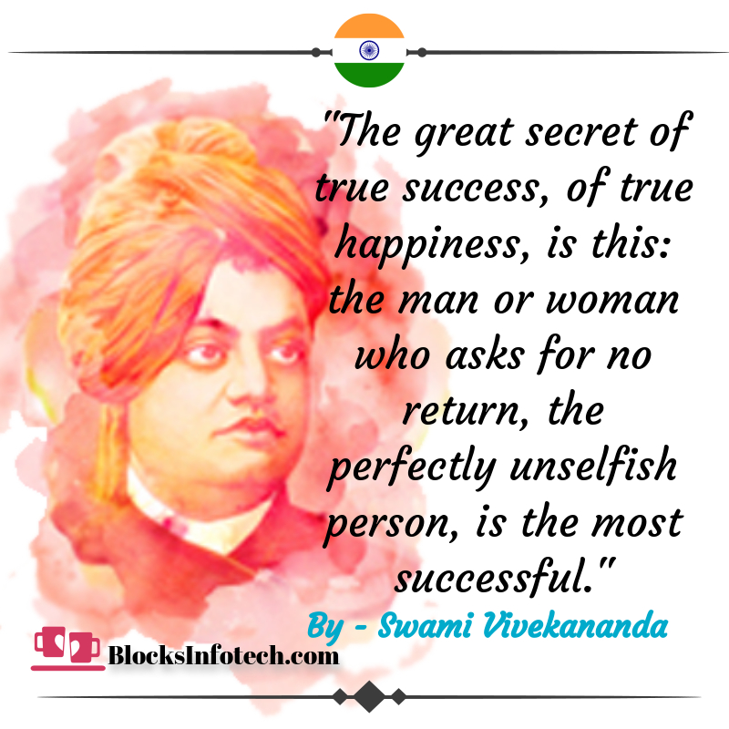"The great secret of true success, of true happiness, is this: the man or woman who asks for no return, the perfectly unselfish person, is the most successful."